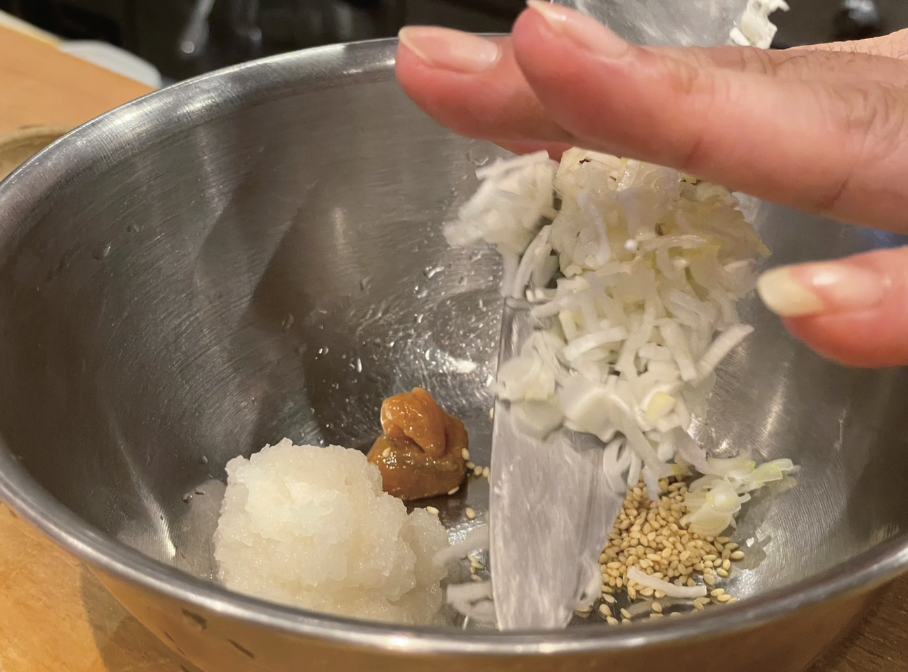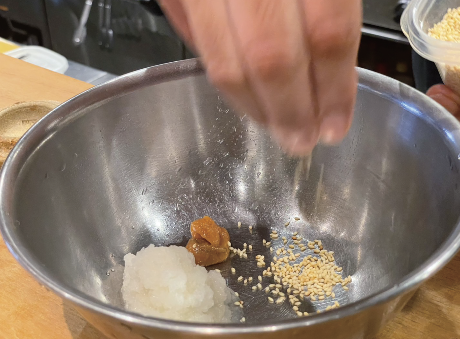 ⑥大根おろしを入れる