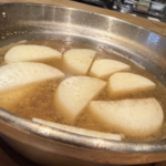 ④800ccの水に干し椎茸、おろし生姜、鶏ガラスープ、味醂、薄口醤油を入れる