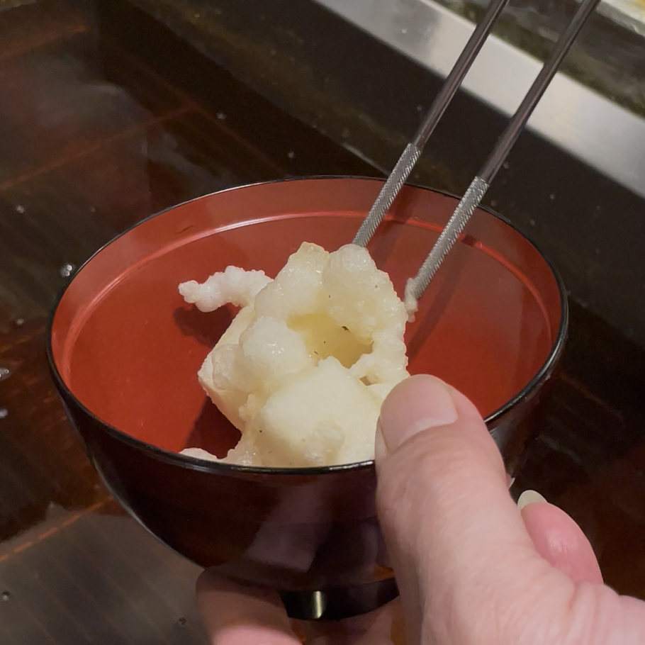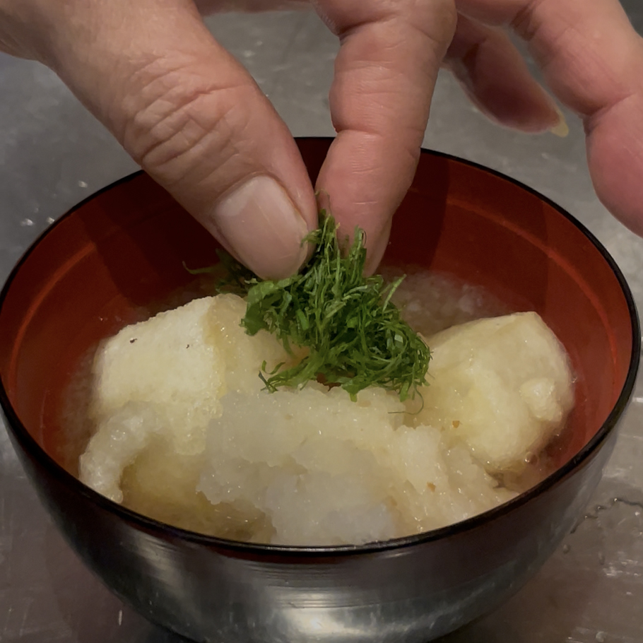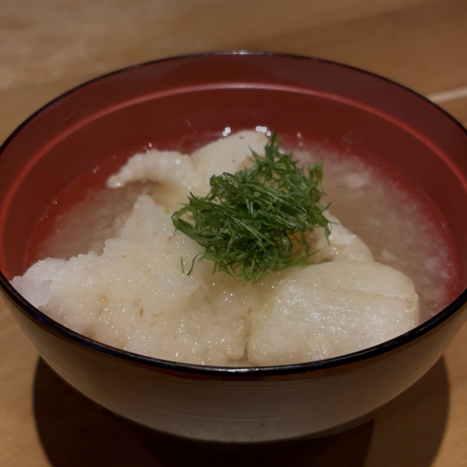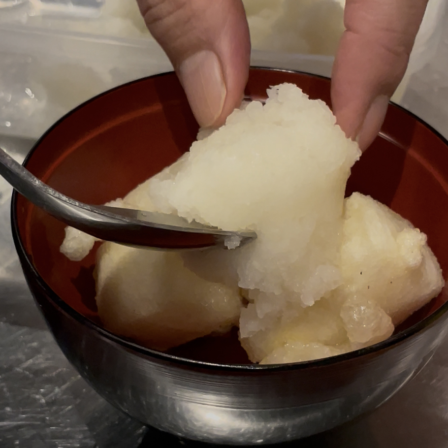 梅出汁に浮かぶ雪餅を、大根おろしでさっぱり味わう逸品。