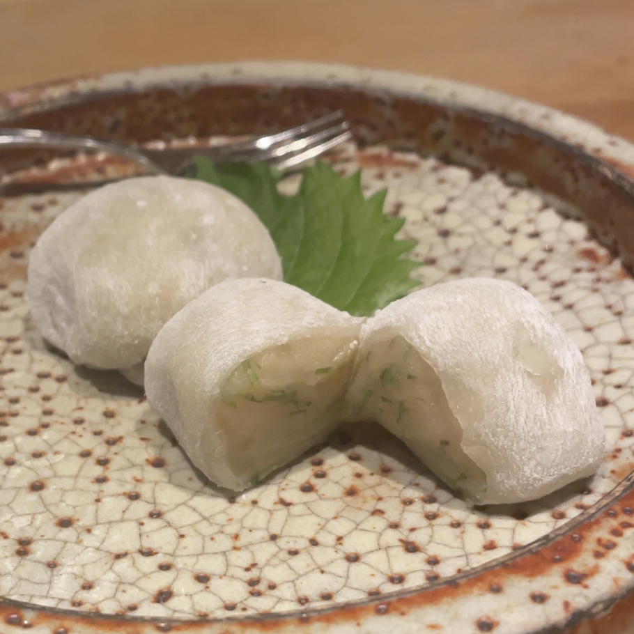 白餡と鶯宿梅を包んだ、甘酸っぱく上品な和菓子。