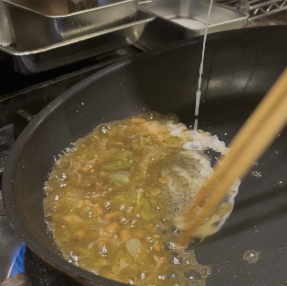 ⑨水溶き片栗粉を入れてあんじょうにする