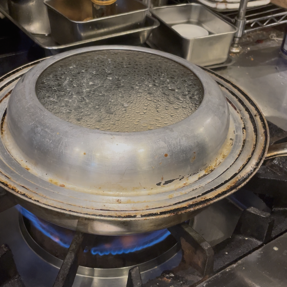 ③蓋をして、水が無くなるまで蒸し焼きをする